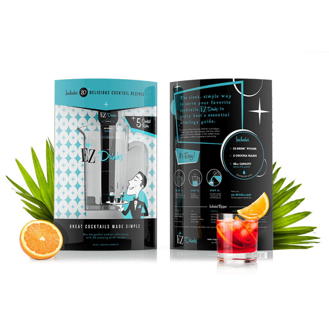 EZ-Drinks is a customizable and patented cocktail pitcher accompanied by 5 "cocktail rulers". The EZ-Drinks cocktail pitcher allows you to create one of twenty craft cocktails provided by one of America's leading mixologists. Decorative lines on our cocktail rulers listing the tasty ingredients show users the appropriate amounts necessary to create the delicious cocktails. Ingredients can be found at your local liquor store, grocery store or online. Perfect cocktails from your first pour to your last! Act now and get the best at home entertainment kit anywhere! THE BIG DEAL PRICE IS JUST $25 (EVERYDAY PRICE $34.99) + FREE SHIPPING!