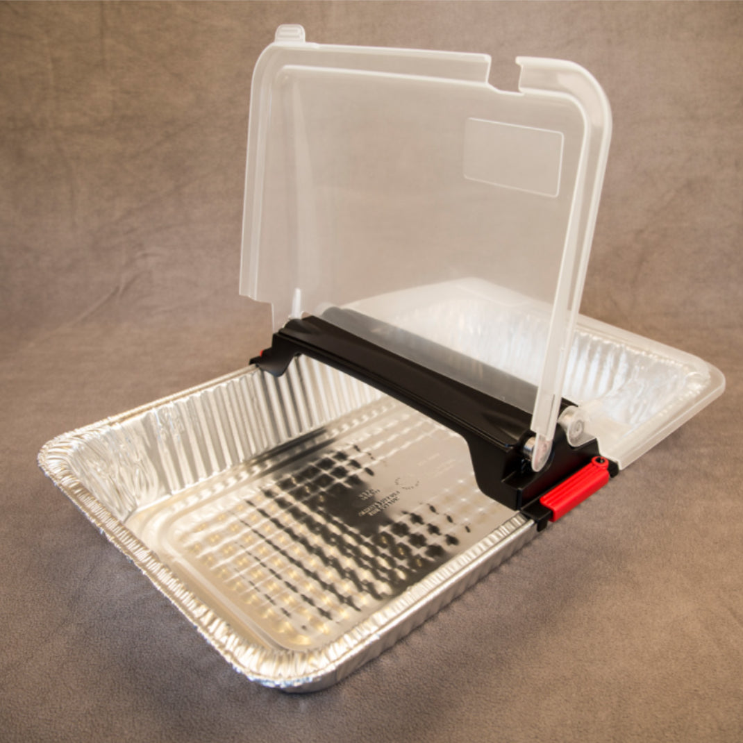 EZLIDZ is a design patented hard plastic, reusable transparent cover made for use with aluminum foil pans. It is made from durable FDA-approved plastic that is designed to withstand heat up to 212 degrees Fahrenheit. It is designed to replace foil when using the aluminum foil pan to serve food at events like BBQs, church events, birthday parties or any event where one would use the aluminum foil pan to serve food. EZLIDZ works best with: