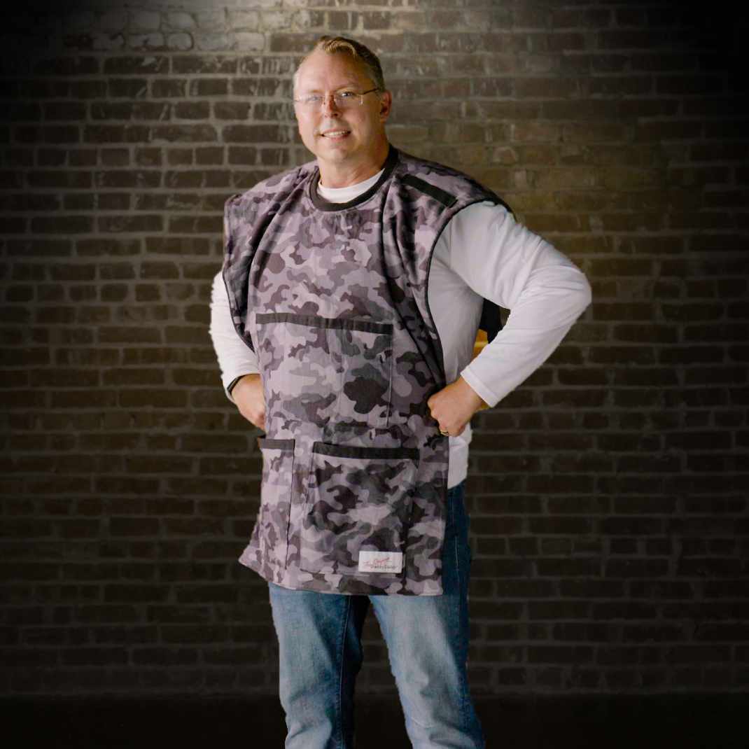 Designed specifically to help new dads, the Original Daddy Caddy is a soft, comfortable, protective & reversible garment made to help keep all of your new baby's items organized, and it makes caring for your infant(s) easier! Each Daddy Caddy is reversible, made with five deep pockets on each side to hold diapers, wipes, pacifiers and ointments, a shoulder loop to hold a burp cloth, and a clasp to keep it close to dad's body. A plush solid fleece on one side and an attractive soft flannel design on the other make it super comfortable both to wear AND to hold your baby against. Machine washable and dryer safe! Just choose your exterior color - Gunmetal Camo or Redrocks Tartan - and get your reversible Daddy Caddy for the incredible price of $49.99!